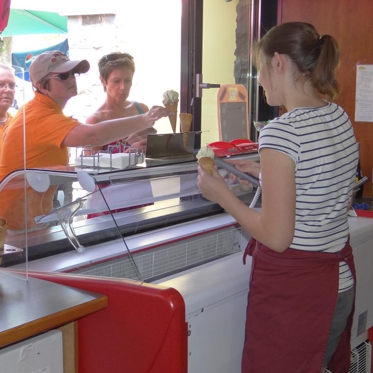 Genießen Sie an heißen Tage auf unserer großen Sonnenterrasse unsere Eisauswahl.